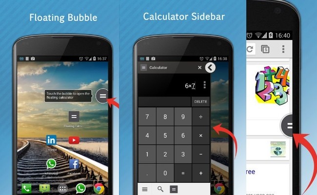 al descargar esta aplicación la instalas y después de instalarla se situara en un burbuja al costado de tu pantalla y cuando necesites sacar algún calculo solo haces clic en la burbujita y listo todo se soluciona con un solo toque en la burbuja.