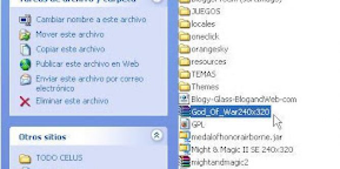 Es imprescidible notar, que ahora podemos ver la extencion del archivo o del juego en la carpeta en mi caso se ve God_of_War240x320.rar; siendo rar la extencion del archivo. Ahora procederemos a cambiarle la extencion al juego dando click derecho sobre el archivo y darle click a cambiar el nombre. Y solo cambiaremos la parte donde dice .rar o punto .zip por .jar . No se olviden del punto antes de colocar la extencion que es lo que delimita al nombre del archivo con la extencion del mismo. Ahora veran su carpeta conteniendo el archivo de la siguiente manera: